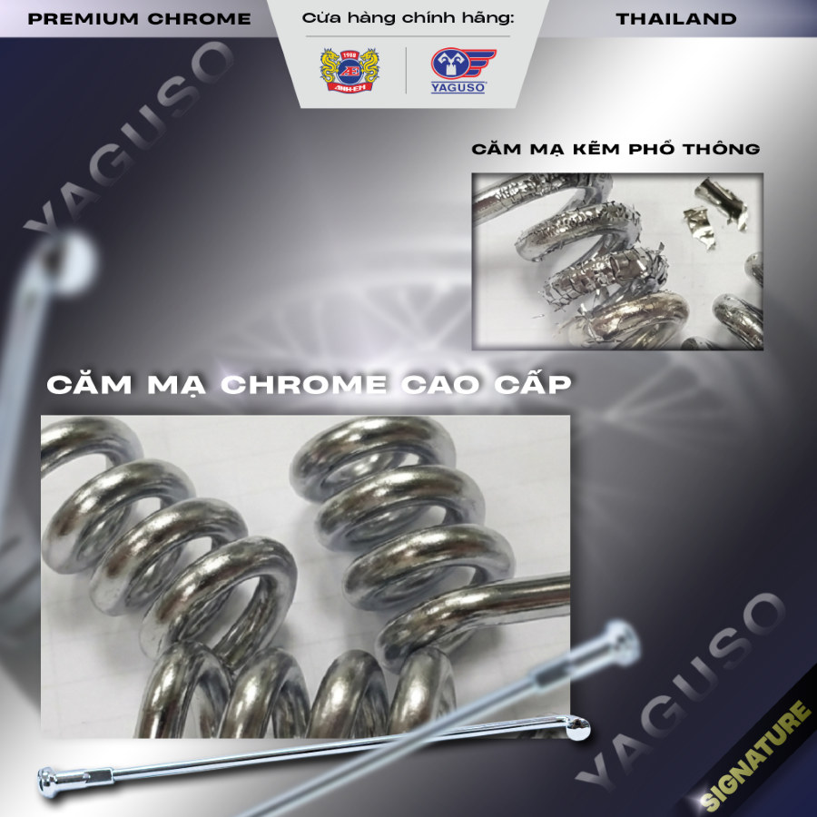 Chất liệu: Thép carbon cao cấp, mạ 3 lớp Crom sáng bóng — công nghệ xi mạ từ Đức độc quyền.